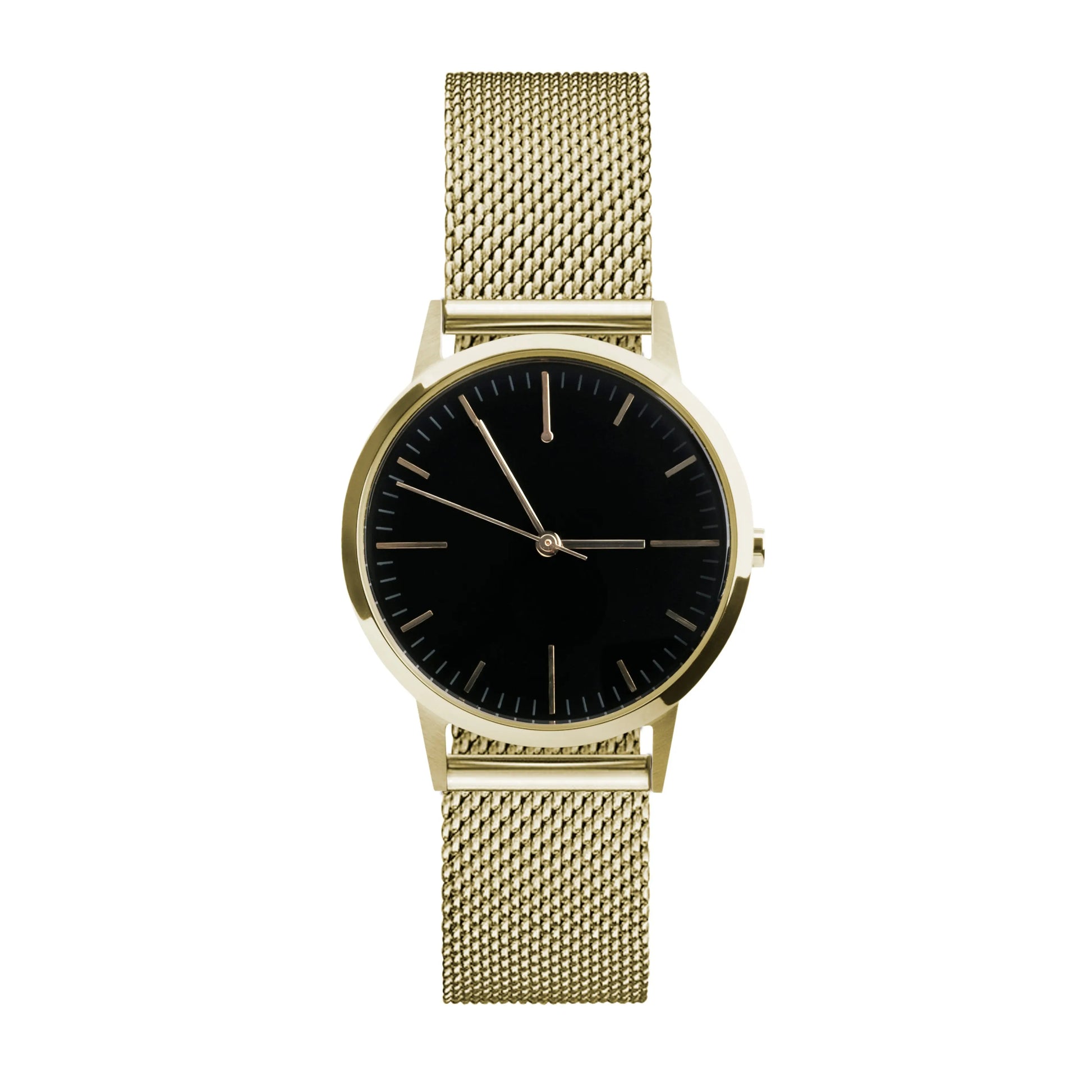 NEW DESIGN The 30mm gold and black dial women's watch, with a 15mm milanese mesh strap, combines the classic detailing of vintage watches with a modern minimalist finish.