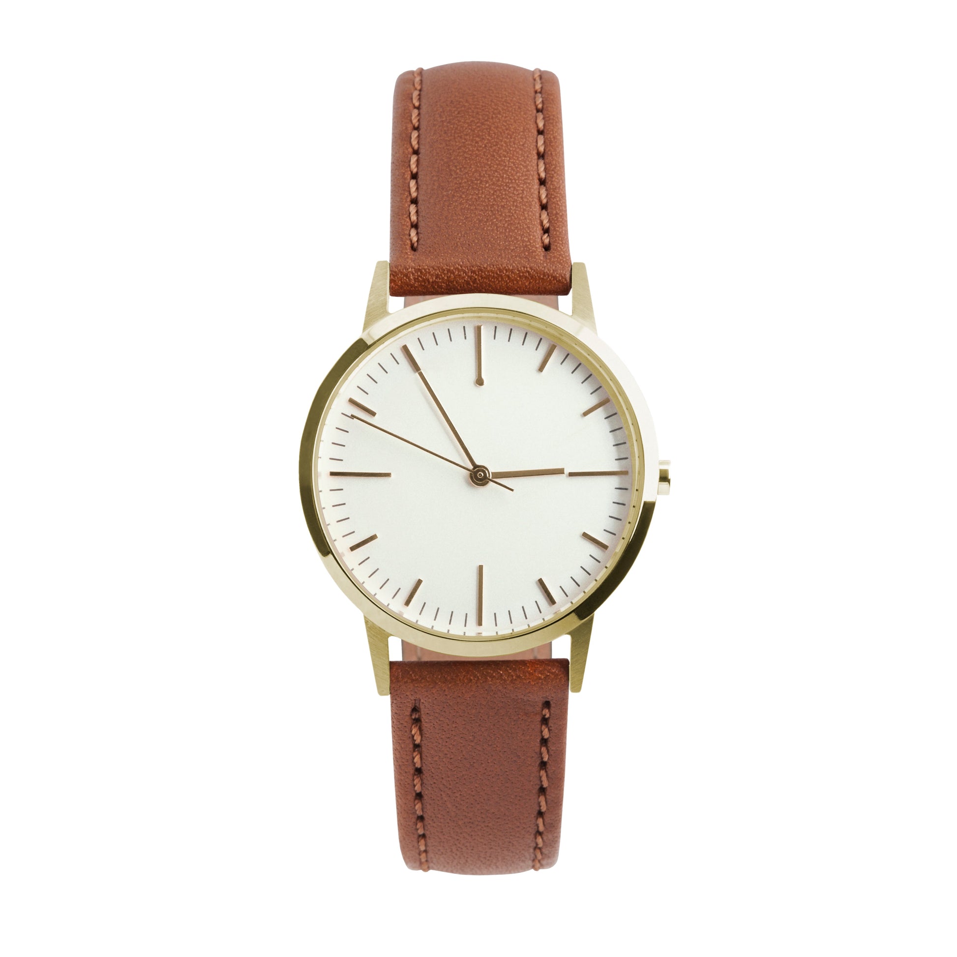 NEW DESIGN - The 30mm gold and tan women's watch combines the classic detailing of vintage watches with a modern minimalist finish.