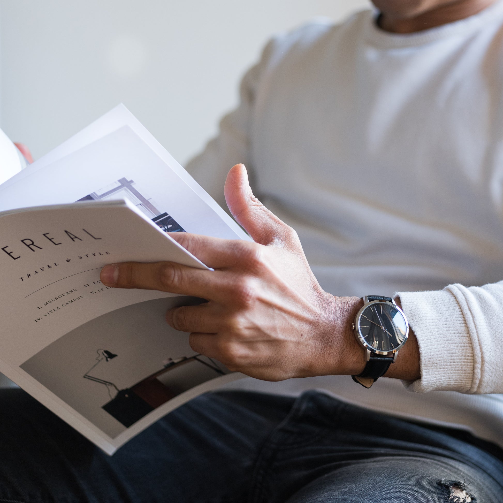 The 40mm silver and black men's watch (or women that prefer a larger watch dial) combines the classic detailing of vintage watches with a modern minimalist finish.