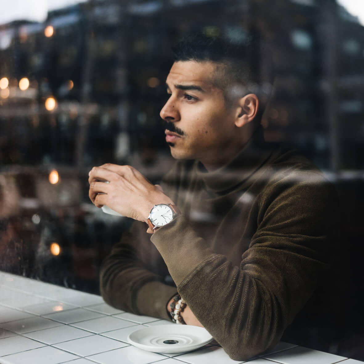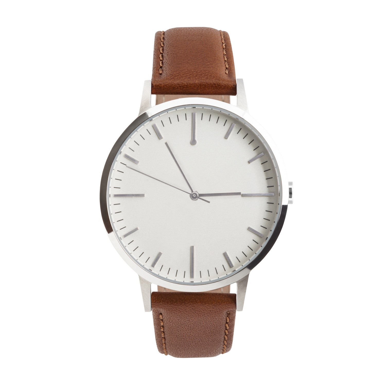 The 40mm silver and tan men's watch (or women that prefer a larger watch dial) combines the classic detailing of vintage watches with a modern minimalist finish.
