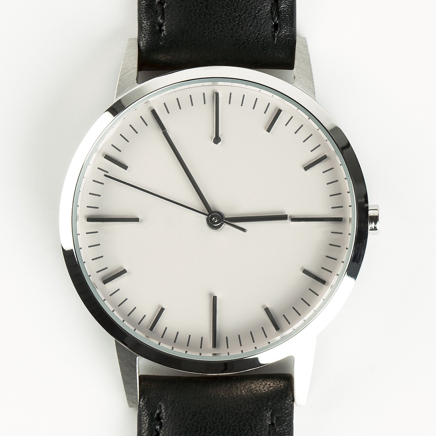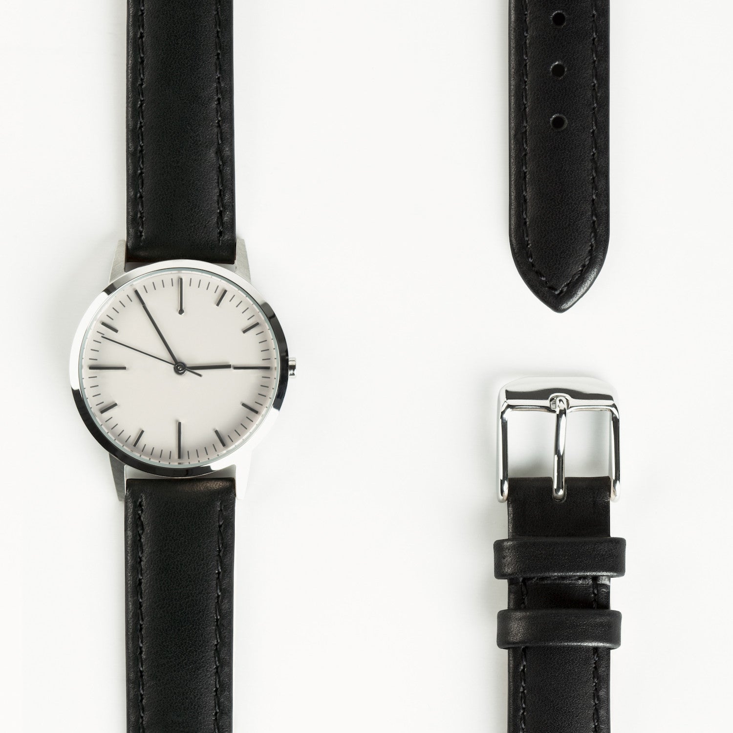 The 30mm silver and black women's watch combines the classic detailing of vintage watches with a modern minimalist finish.
